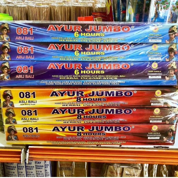 Dupa Harum Ayur JumboDibuat dengan hati yang tulus secara manual dengan cara digulung menggunakan tangan. Murni menggunakan bahan-bahan alami.dua varian : 6 Jam dan 8 Jamisi 30 s