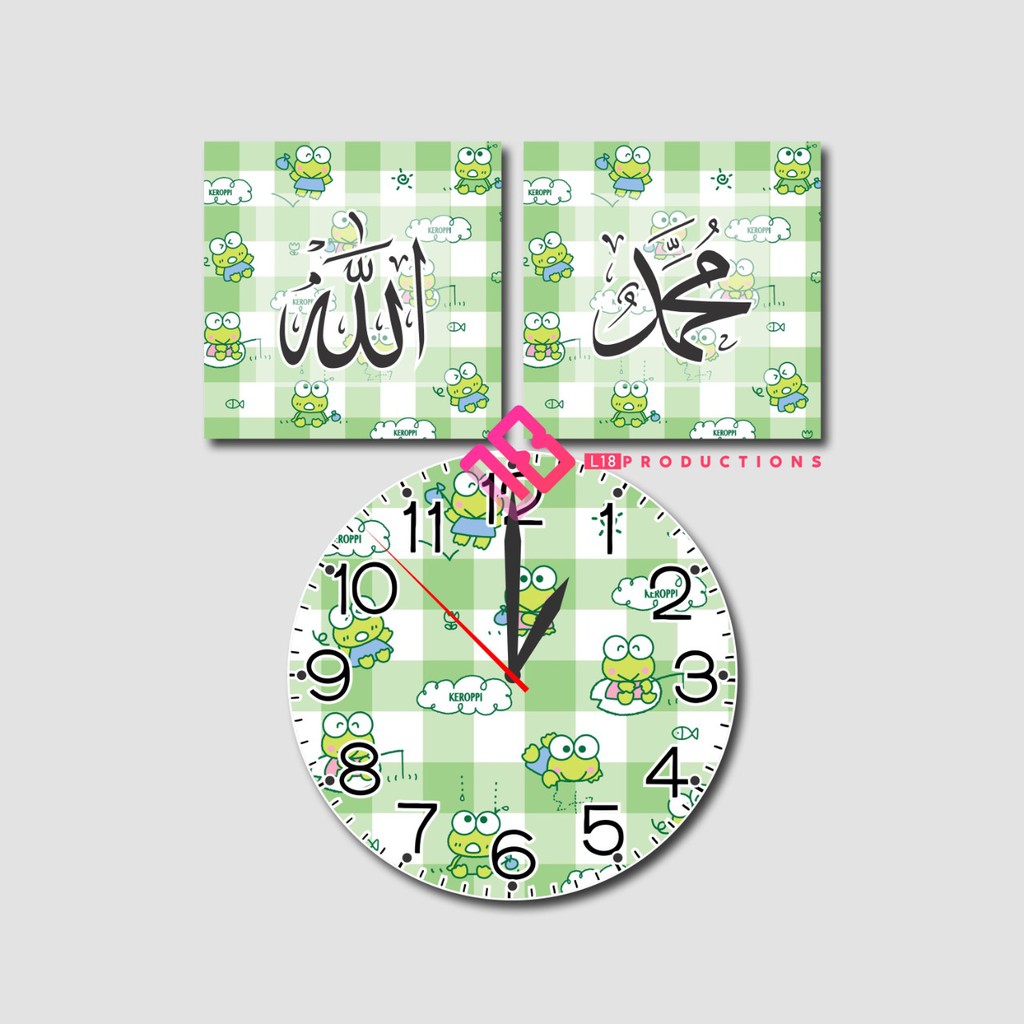 Toko Grosir Perlengkapan di Kabupaten Pacitan Hiasan Dinding Poster Pajangan Walldecor 3in1 Kaligrafi Allah Muhammad Jam Karakter Keroppi Shabby dari L18Productions Kota Blitar