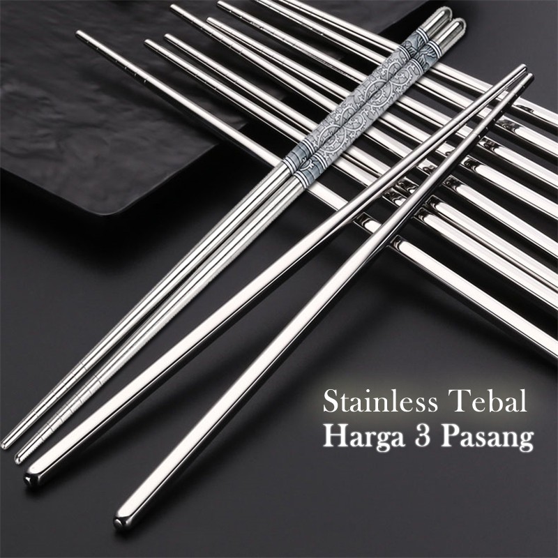 Cuci Gudang Perlengkapan di Kabupaten Tabanan Laciola 3 Pasang Sumpit Stainless Steel Berkelas Chopstick Import High Quality dari Tidak Ada Merek Kab. Sleman