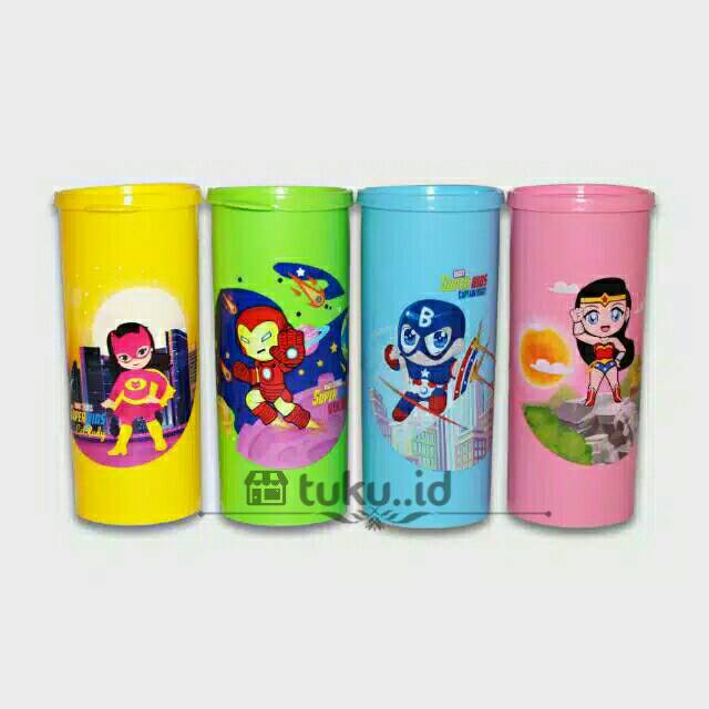 Botol anak anak dengan motif superhero ini cocok ini utk dibawa ke sekolah dan cocok utk souvenir ulang tahun dll..Terdiri dari 4 warna=1. Kuning2. Biru3. Hijau4. PinkTinggi 18cmDiamete