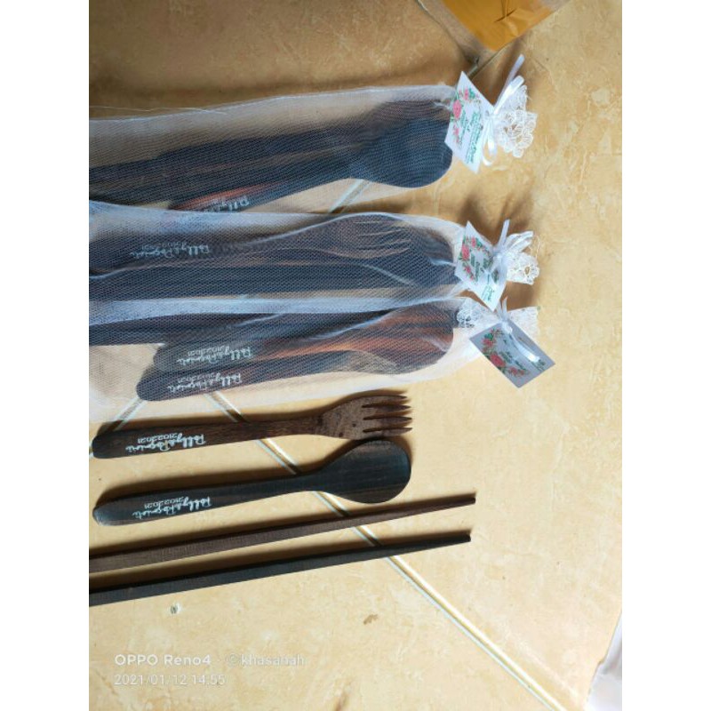 bahan kayu panjang sumpit +-22cmsendok garpu +-17cmharga per setminimal order 20pake sablon minim