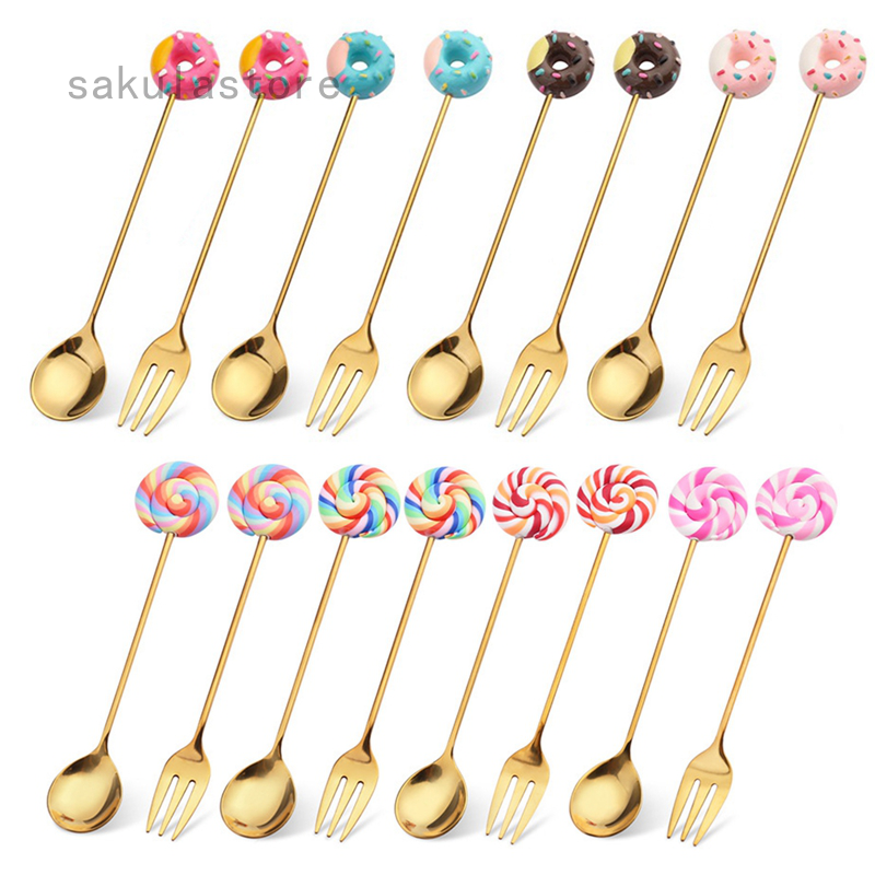 Best Seller Perlengkapan di Kabupaten Cirebon Sendok Garpu Bentuk Donat Bahan Stainless Steel Untuk Dessert Teh Kopi Es Krim dari Sakulastore.id Luar Negeri