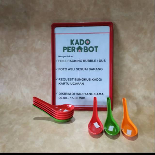 Untuk Anda yang familiar kualitas Sendon Bebek Melamine Ware Unica - Sendok Bubur Melamine yang ingin Kamu cari namun demikian belum memutuskan secara detail mana yang bakal dibeli, dunia maya berpotensi menyampaikan info yang bermanfaat untuk Dikau dalam mengambil keputusan. Melalui dunia maya, Engkau akan memiliki berbagai opsi Perlengkapan juga informasi barang yang luas. Situs pedagang biasanya memberikan diskripsi paparan tentang produk yang kita lego. Informasi penting seperti pangkat produk, spesifikasi dan ketersediaan disediakan. Ini memungkinkan Dikau untuk membuat pilihan berdasarkan informasi dan membayar secara teguh. Fasilitas pembeli juga dikenal bagus. Sejumlah pedagang menyampaikan pesan terima kasih yang dipersonalisasi kepada pembeli setelah mereka melakukan pembelanjaan.